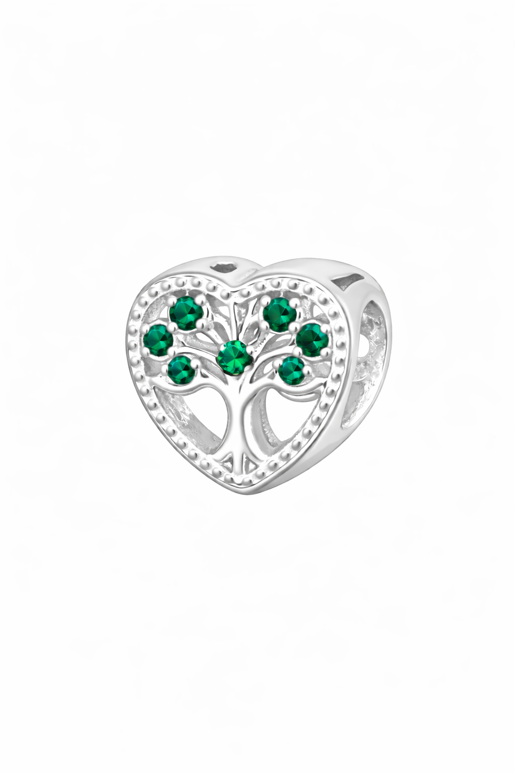 Encante-se com a beleza e o significado do berloque Coração Árvore da Vida, confeccionado em prata. O design em formato de coração traz a simbólica árvore da vida ao centro, adornada com pedras verdes que representam crescimento, renovação e prosperidade, criando um visual delicado e cheio de vida.