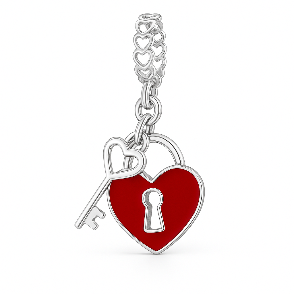 O berloque Coração Chave do Amor em Prata 925 simboliza conexões verdadeiras e sentimentos guardados com carinho. Com esmaltação vermelha intensa e uma delicada chave em formato de coração, o berloque representa romance, cumplicidade e laços especiais que atravessam o tempo. Uma escolha perfeita para completar sua pulseira com significado.