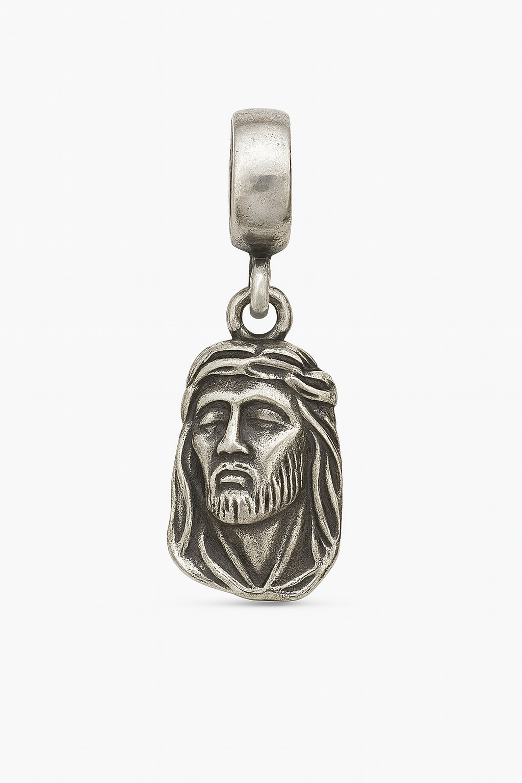 O Berloque Jesus Cristo em Prata 925 é uma peça profunda em significado e fé, ideal para quem busca carregar proteção e espiritualidade no dia a dia. Seu design pendente apresenta o rosto de Cristo em alto relevo, com detalhes minuciosos no cabelo, barba e expressão serena, reforçando a sensação de devoção e paz.