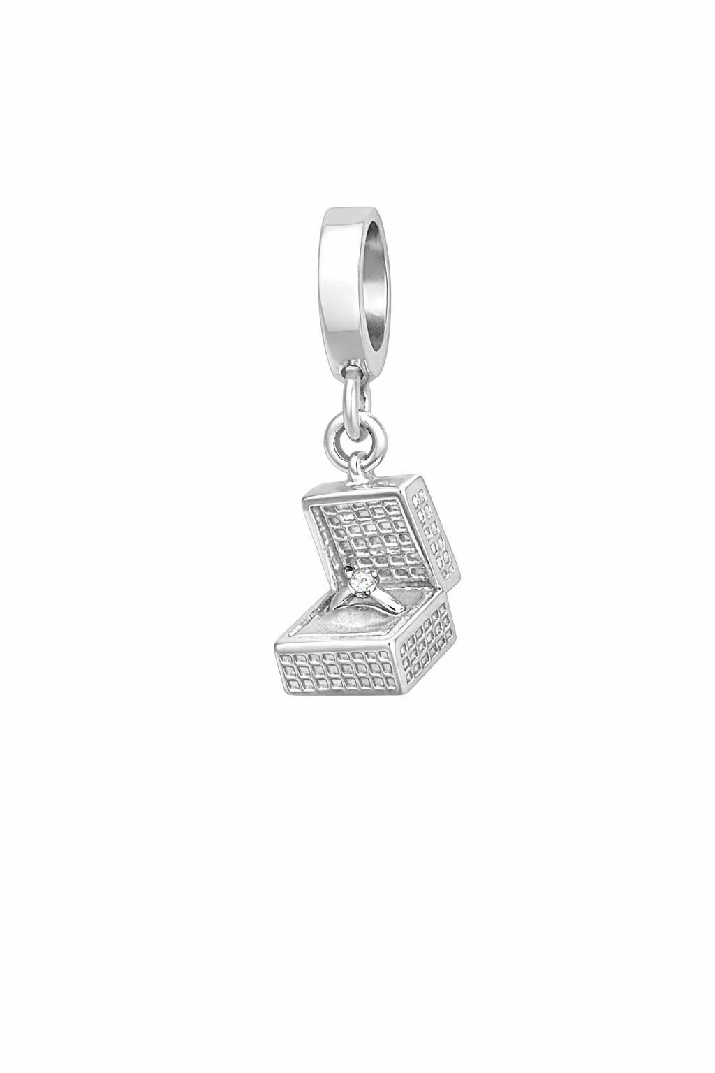 Delicado e cheio de significado, este berloque em prata representa uma charmosa caixinha de anel aberta com solitário em destaque — símbolo de amor, compromisso e momentos inesquecíveis. Um design romântico e sofisticado que adiciona brilho e emoção à sua composição.
