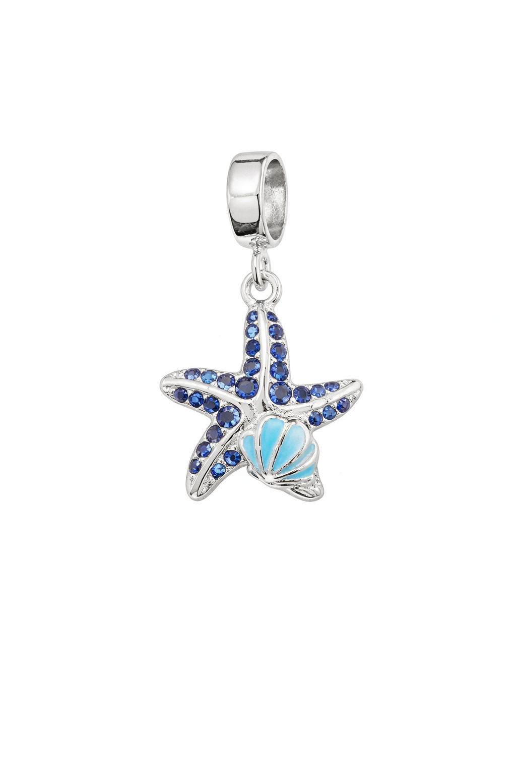 Berloque em prata com design inspirado no encanto do mar, trazendo a delicadeza da estrela-do-mar cravejada em tons de azul e o charme suave da concha esmaltada. Uma peça luminosa e cheia de significado, que remete à leveza, liberdade e beleza dos momentos à beira-mar. O acabamento polido valoriza cada detalhe, criando um visual sofisticado e ao mesmo tempo descontraído. Compatível com pulseiras padrão, é perfeito para composições temáticas, coleções de viagem ou para quem carrega o amor pelo oceano sempre por perto.
