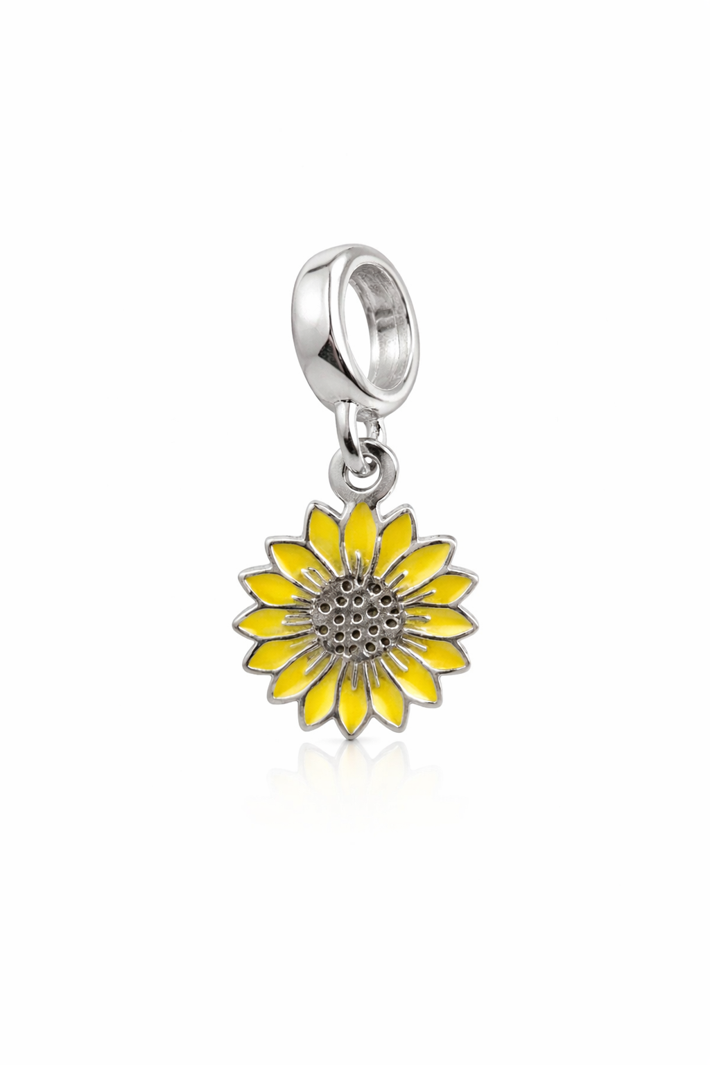 Radiante e cheio de significado, o berloque em formato de girassol simboliza luz, energia e positividade. Com acabamento em prata clara e pétalas esmaltadas em amarelo vibrante, é uma peça delicada que ilumina a composição da sua pulseira com charme e alegria. Um berloque perfeito para representar dias ensolarados, força e boas vibrações. Compatível com pulseiras padrão.