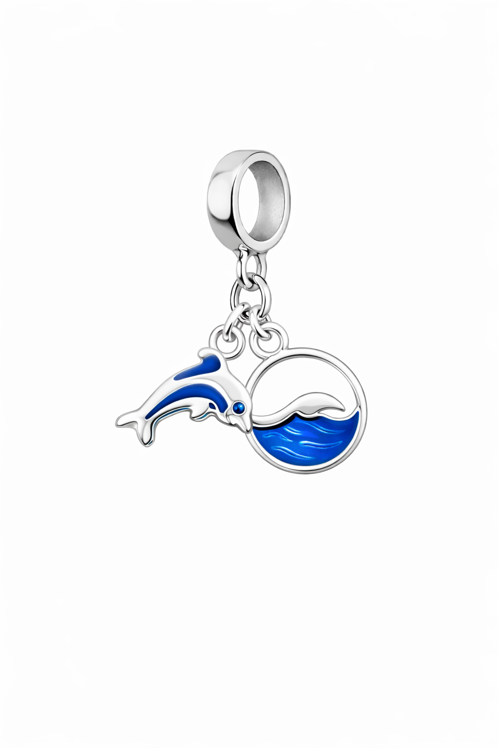 Leve, delicado e cheio de significado, o berloque Golfinho do Mar representa liberdade, alegria e conexão com o oceano. Com detalhes esmaltados em azul que formam as ondas e o golfinho em movimento, essa peça traz frescor e personalidade para a sua pulseira. Um toque especial para quem ama o mar e carrega a energia das águas por onde passa. Compatível com pulseiras padrão.
