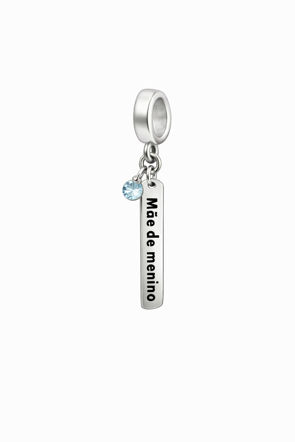 Berloque em prata com design delicado e cheio de significado, representando o amor único e incondicional de ser mãe de menino. A plaquinha vertical traz a gravação “Mãe de menino”, acompanhada por uma pedra em tom azul que simboliza proteção, carinho e conexão eterna. O acabamento polido realça o brilho da prata e valoriza cada detalhe da peça, tornando este berloque uma escolha especial para eternizar momentos e sentimentos. Compatível com pulseiras padrão, é perfeito para carregar consigo o orgulho e o amor de ser mãe todos os dias.