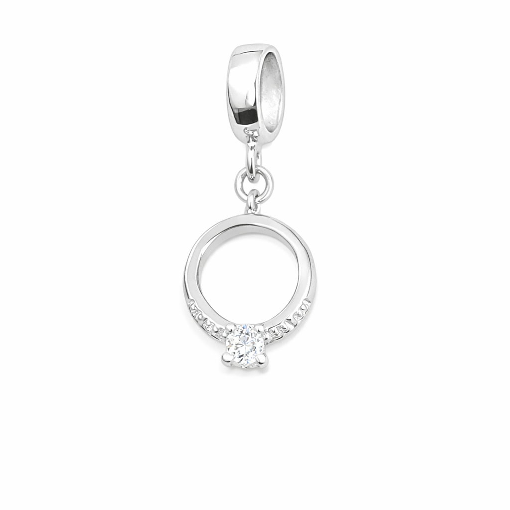 Clássico e atemporal, este berloque em prata traz o charme do solitário em uma versão delicada e sofisticada. O aro minimalista recebe pedra central brilhante com acabamento refinado, criando um ponto de luz elegante que valoriza qualquer composição.