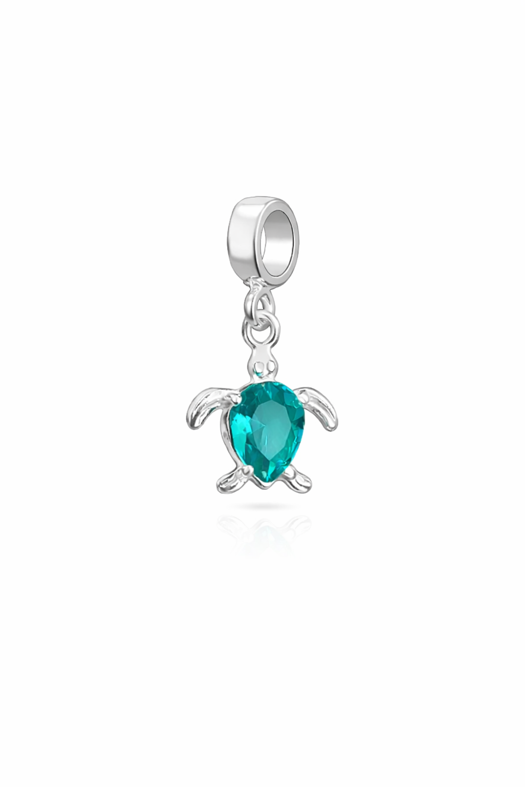 O Berloque Tartaruga Prata 925 encanta com seu design delicado e pedra central azul em formato de gota. Representa proteção, serenidade e longevidade — perfeito para quem ama o mar e a natureza.