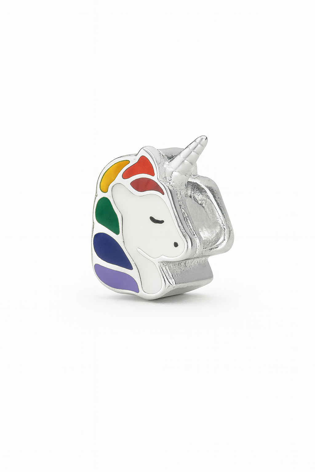 O Berloque Unicórnio Colorido em Prata 925 é uma peça encantadora que traz leveza, fantasia e personalidade à sua pulseira. Seu design representa o unicórnio em perfil, com acabamento esmaltado em cores vibrantes, criando um visual alegre e moderno. O contorno em prata polida reforça a delicadeza do desenho, enquanto o furo lateral mantém a peça firme e confortável no uso diário.